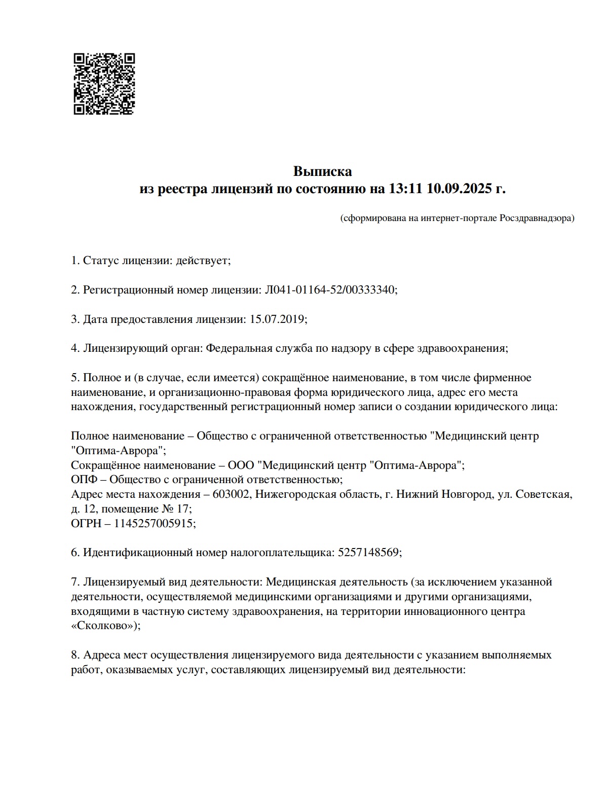 Лицензия дает нам право проведения медицинских осмотров и комиссий. Выдается официальное медицинское заключение.